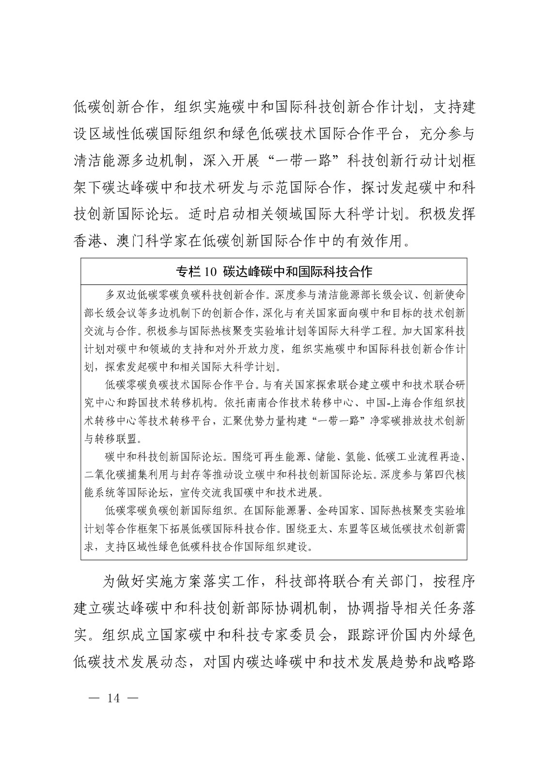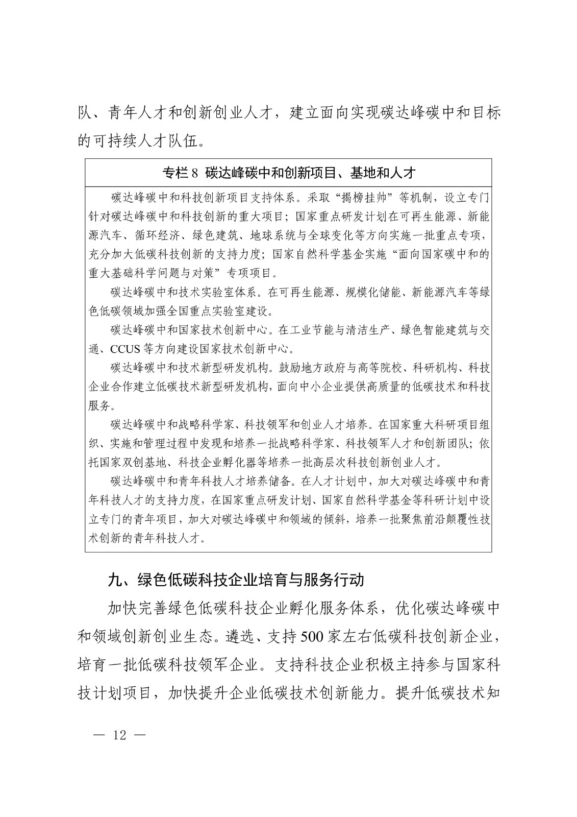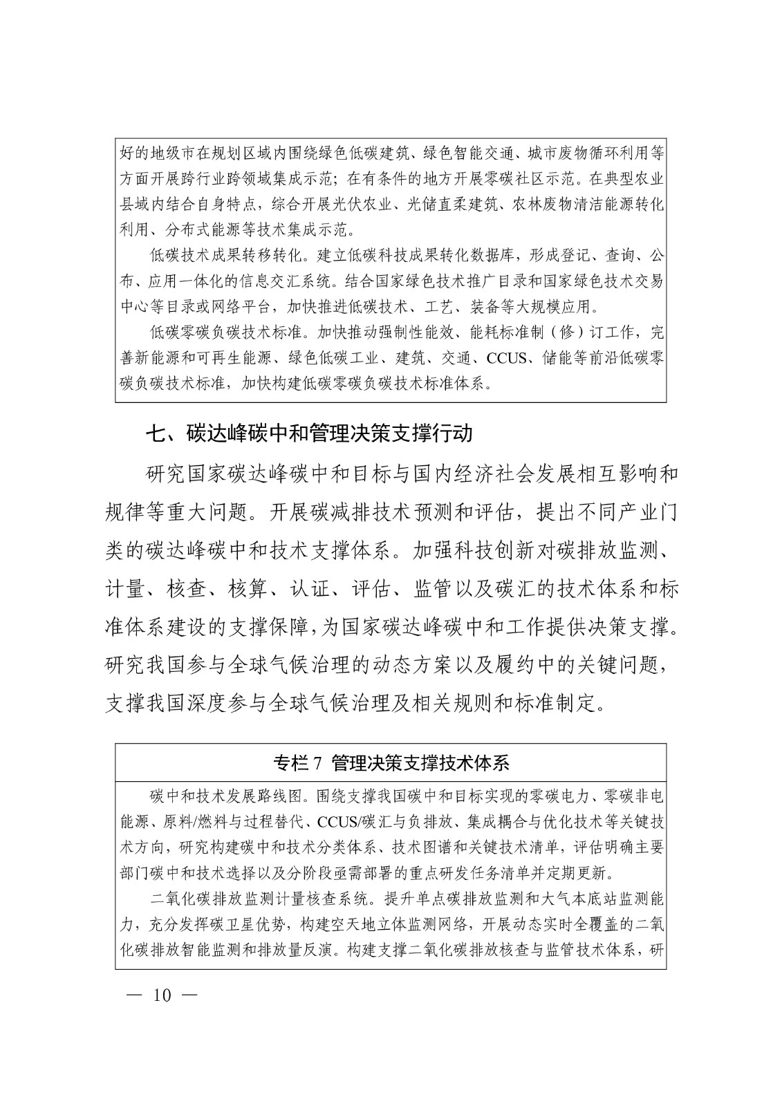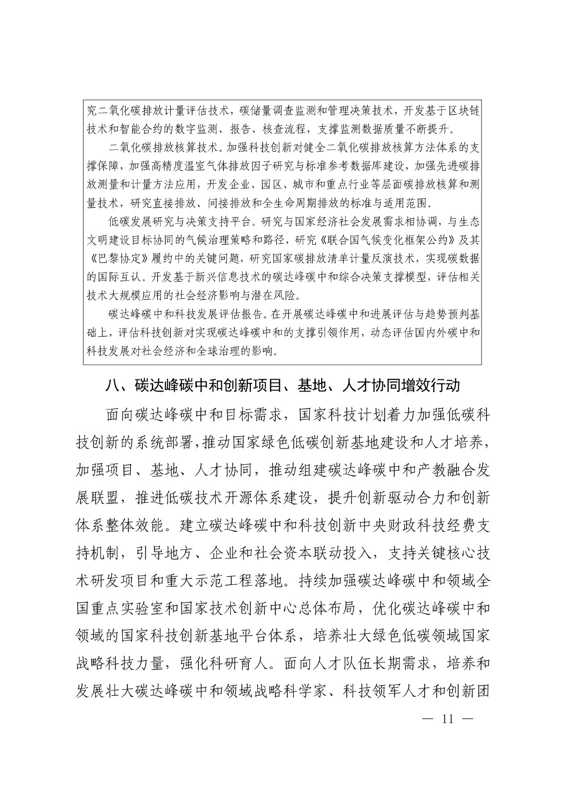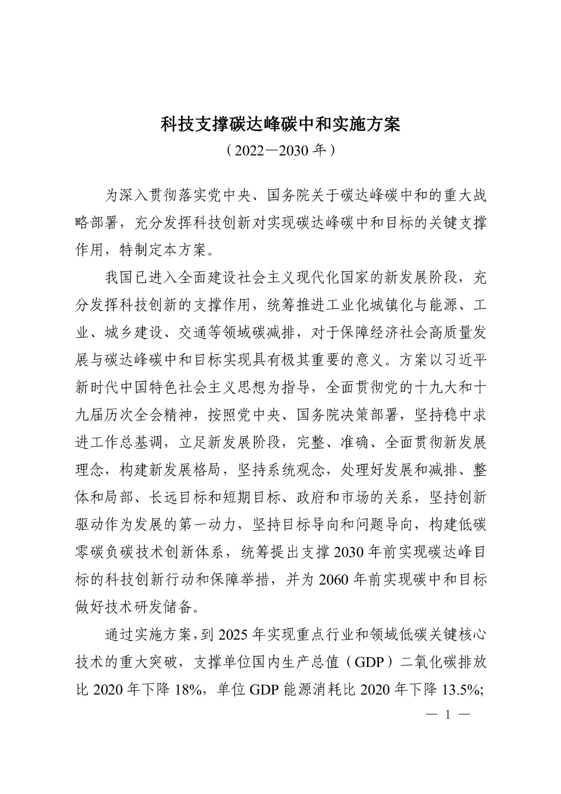 為深入貫徹落實(shí)黨中央、國(guó)務(wù)院關(guān)于碳達(dá)峰碳中和的重大戰(zhàn)略決策,做好科技支撐碳達(dá)峰碳中和相關(guān)工作,依據(jù)《中共中央 國(guó)務(wù)院關(guān)于完整準(zhǔn)確全面貫徹新發(fā)展理念做好碳達(dá)峰碳中和工作的意見》《2030年前碳達(dá)峰行動(dòng)方案》,結(jié)合碳達(dá)峰碳中和領(lǐng)域科技創(chuàng)新工作新形勢(shì)新情況,科技部、國(guó)家發(fā)展改革委、工業(yè)和信息化部、生態(tài)環(huán)境部、住房城鄉(xiāng)建設(shè)部、交通運(yùn)輸部、中科院、工程院、國(guó)家能源局共同研究制定了《科技支撐碳達(dá)峰碳中和實(shí)施方案(2022—2030年)》?,F(xiàn)印發(fā)給你們,請(qǐng)遵照?qǐng)?zhí)行。